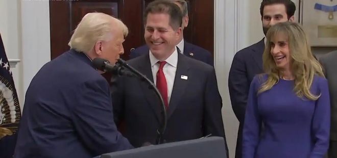 特朗普在社交媒体上转发了这则消息并回应道,戴尔夫妇是“两名伟大的人,我爱戴尔”。